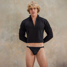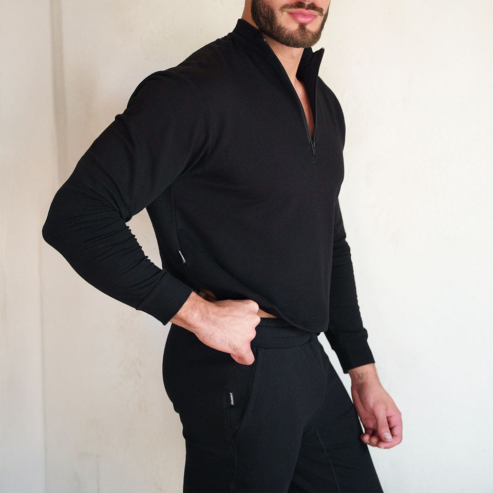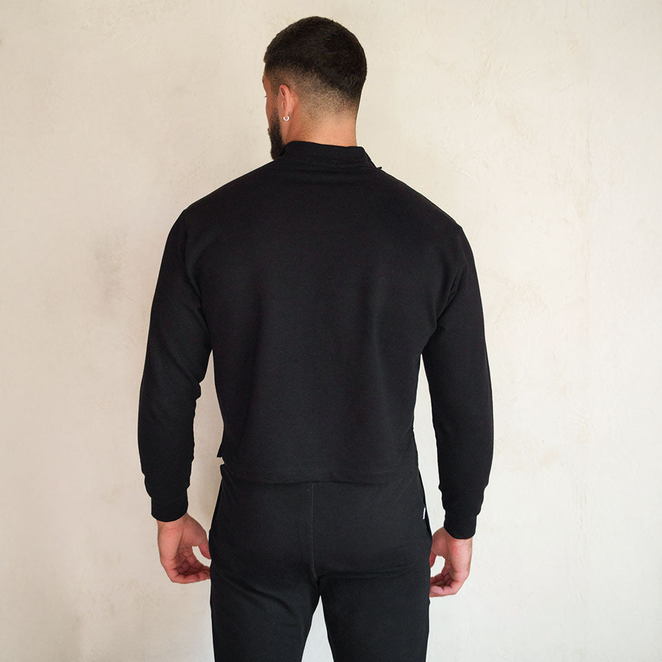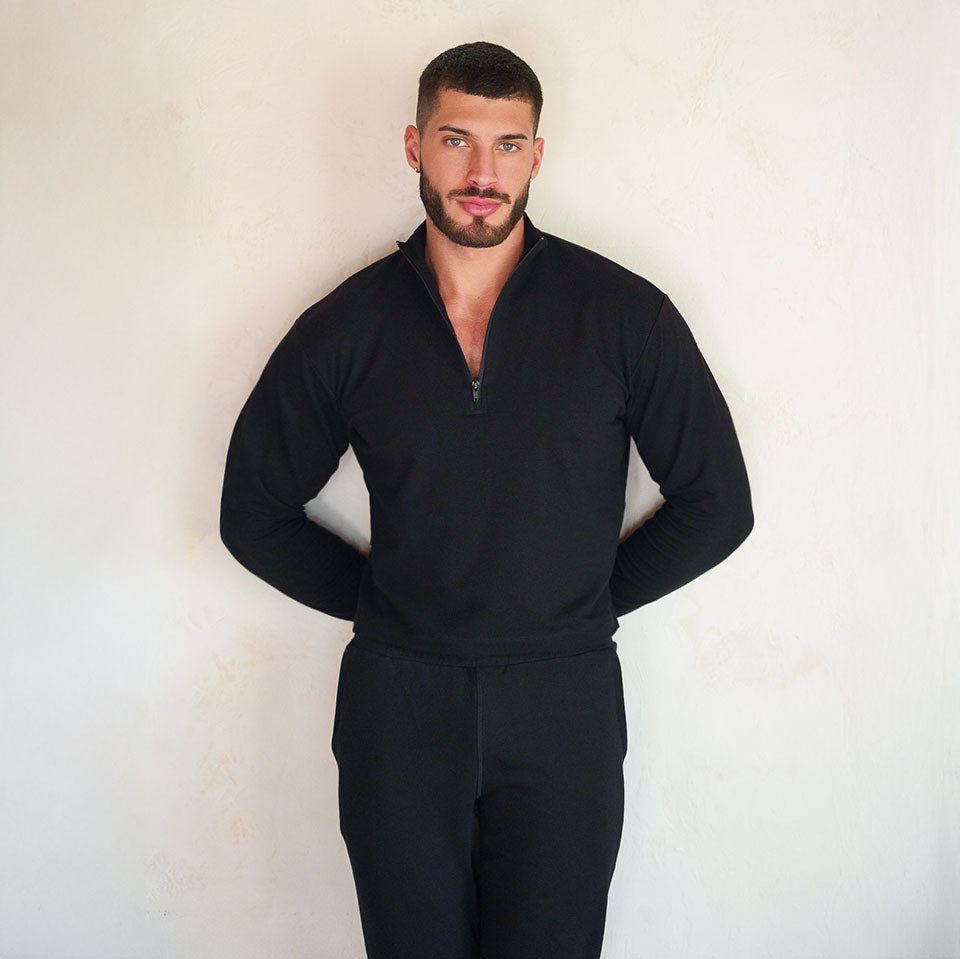 The Shrunken Half Zip sits just above the hip, offering a sharp, confident cut that shows a hint of skin. Made with Peruvian Pima Terry, it feels smooth the moment you pull it on. The high-quality half-zip glides effortlessly and adds a quiet edge to the silhouette. Tailored to follow the natural lines of the body. Simple, intentional, and easy to wear.