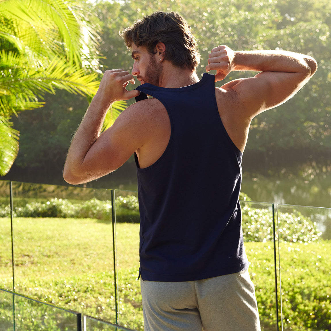 Der Täglich Tank ist aus Peruaner gefertigt Pimabaumwolle Baumwolle . eine hypoallergene, langlebige Baumwolle, handgeerntet in Peru. Verfügt über eine Körperlänge von 27 Zoll für Größe M, die unterhalb der Hüfte endet. Entworfen mit einem Racerback, um den Rücken und die Schultern zu betonen. Schmal zulaufende Passform. Tragen Sie dieses Tanktop zum Heben oder Entspannen.
