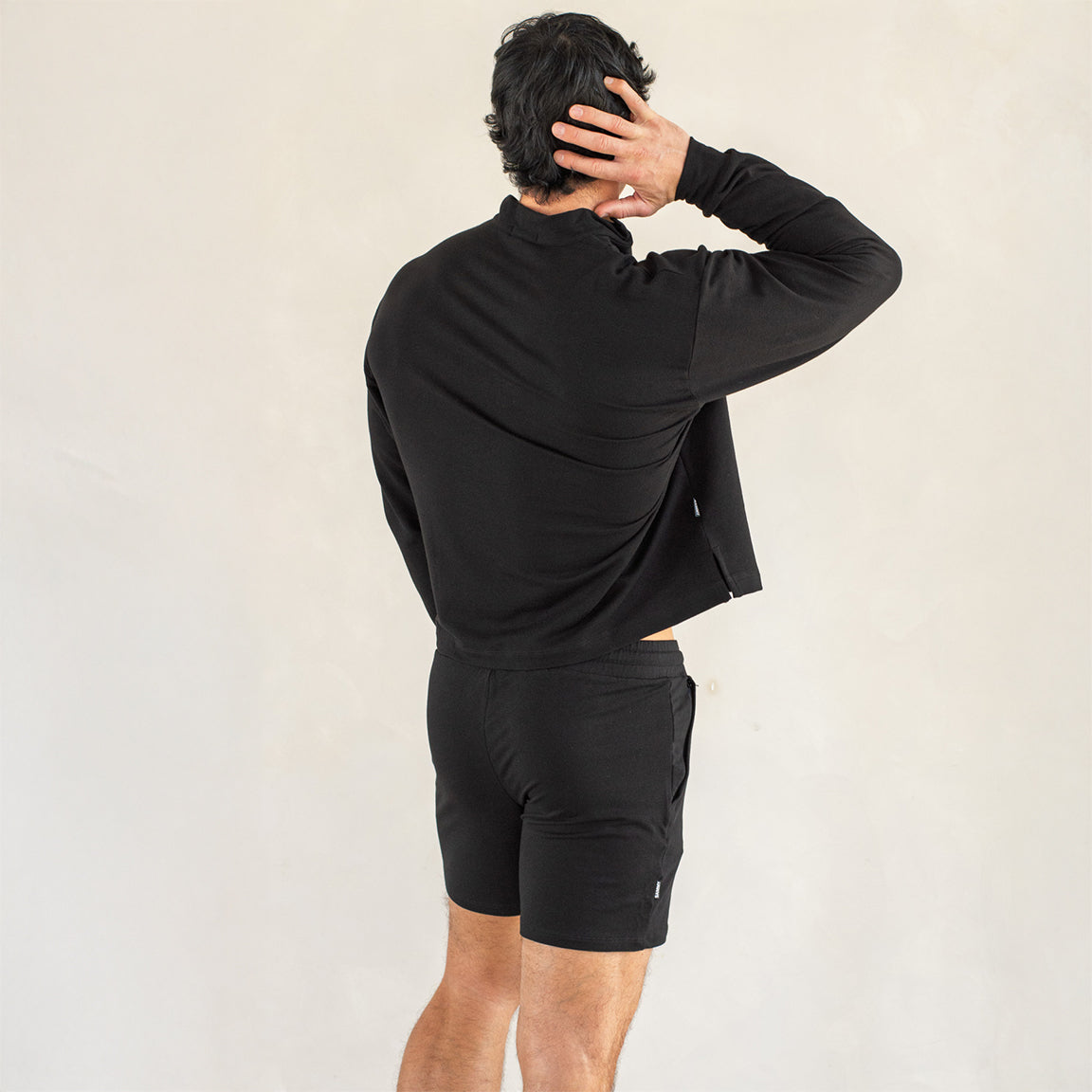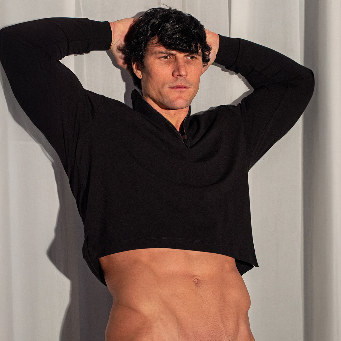 The Shrunken Half Zip sits just above the hip, offering a sharp, confident cut that shows a hint of skin. Made with Peruvian Pima Terry, it feels smooth the moment you pull it on. The half-zip glides effortlessly and adds a quiet edge to the silhouette. Tailored to follow the natural lines of the body. Simple, intentional, and easy to wear.