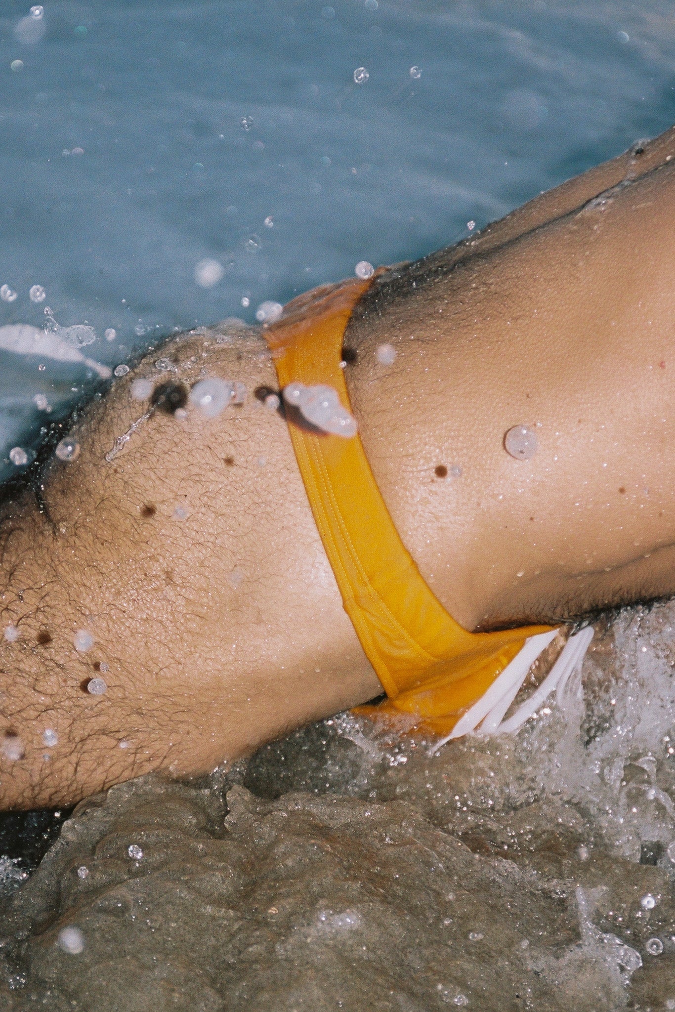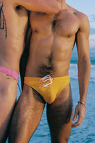 Lycra italiana brillante. 80% Poliamida y 20% Elastano. Esta mezcla de tejidos italianos resistentes al cloro y al aceite está confeccionada con un acabado mate. Diseñado con elasticidad en cuatro direcciones, excelentes propiedades de absorción de la humedad, alto poder moldeador y protección UV. Lava tu Swim Thong del revés en frío con prendas similares. Colgar para secar para prolongar la vida útil.