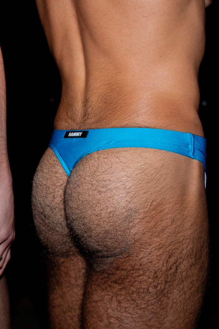 El Shiny Swim Thong está confeccionado con un tejido italiano con un sutil acabado metálico. Un tejido impermeable de moda con resistencia al cloro y al pilling. Diseñado para realzar los glúteos. Tres capas de forro para un soporte y cobertura frontal óptimos. Cordón personalizado con puntas del logo SAMMY .