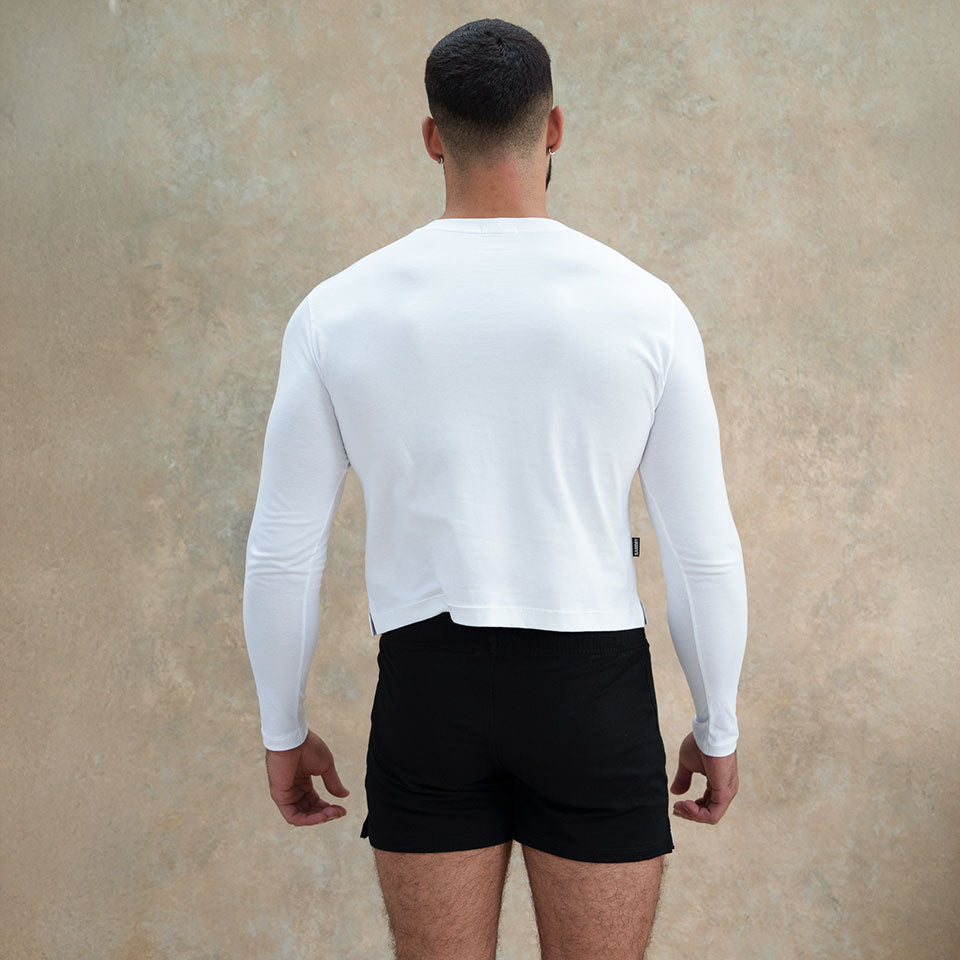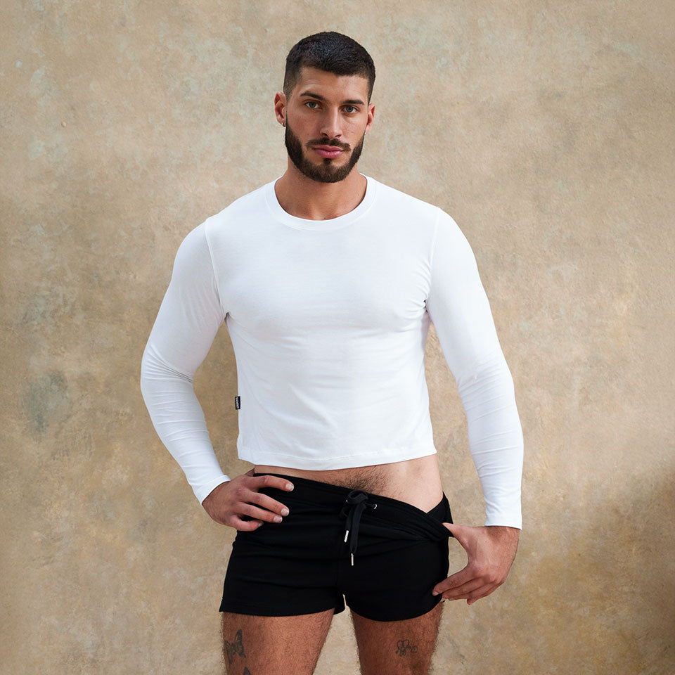 The Shrunken Long Sleeve Tee lands slightly above the hip and below the belly button. Designed to show just a peek of skin. Made with Peruvian Pima Cotton. A hypoallergenic, long-lasting cotton, hand-harvested in Peru. Drapes freely down the torso. Wear this tee all day, every day.